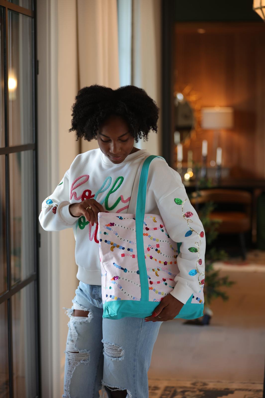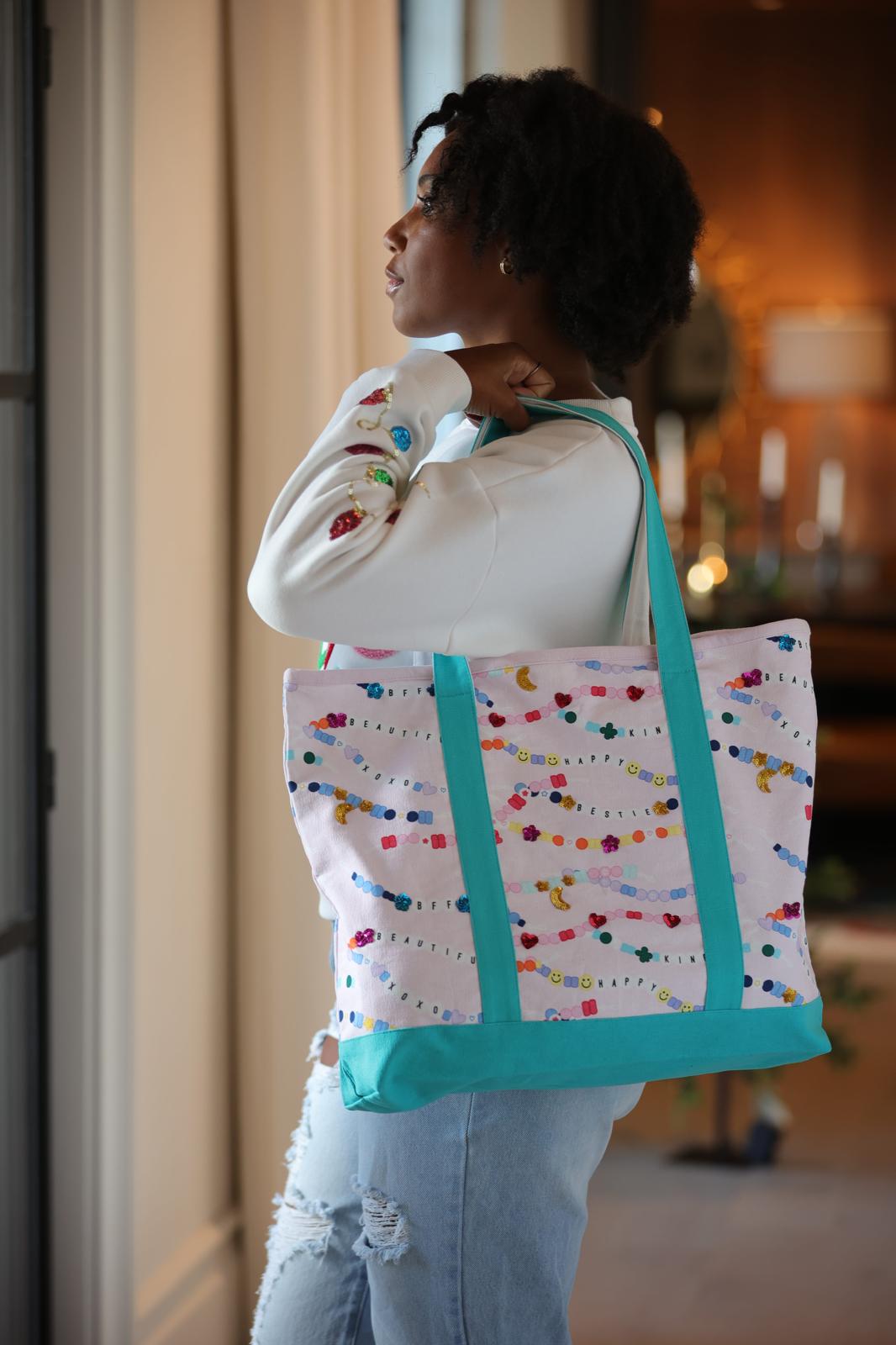 Carry your essentials in style with my Friendship Bracelet Sequin Tote. Soft, muted colors and twinkly sequins make it perfect for everyday adventures, sleepovers, or keeping all your favorite little things close. Your go-to bag for fun, friendship, and everything in between!
